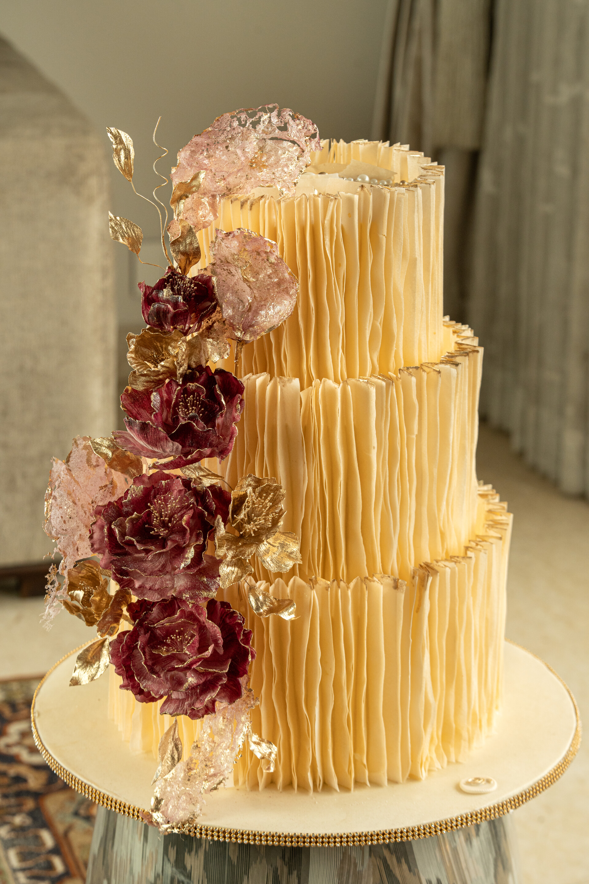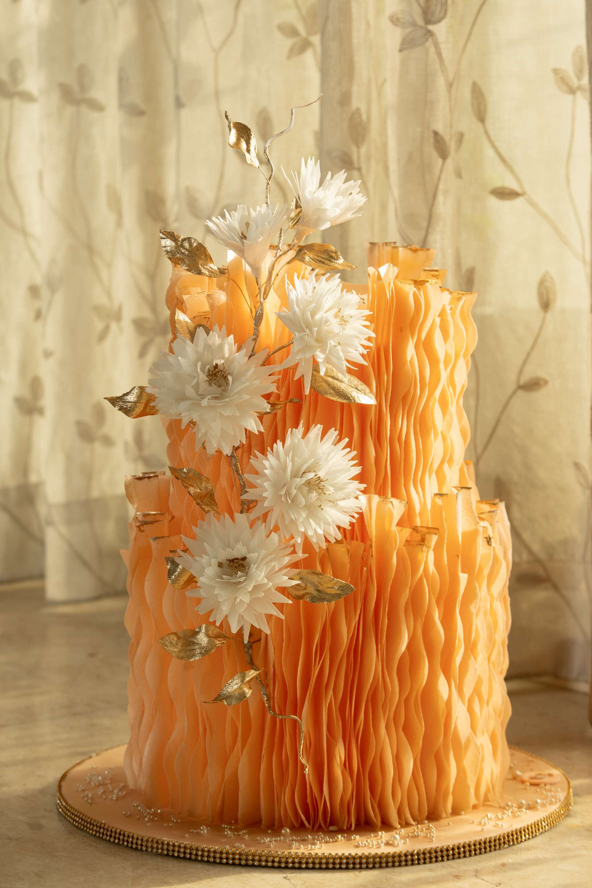 Introducing to you Deliciae’s new wedding cake collection in the wafer paper technique. This technique allows for a completely new look for my custom cakes, with ruffles being the central theme. Vibrant colours, exotic light flowers, and ofcourse that touch of gold makes this collection an exciting one.